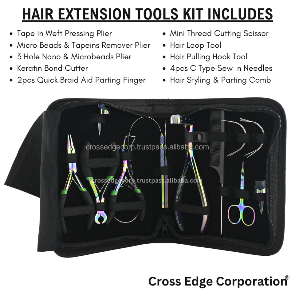 Kit de herramientas de extensión de cabello profesional, cinta de microperlas, extensiones de tejido, Alicates, alicates de presión, gancho de tracción, peine de separación