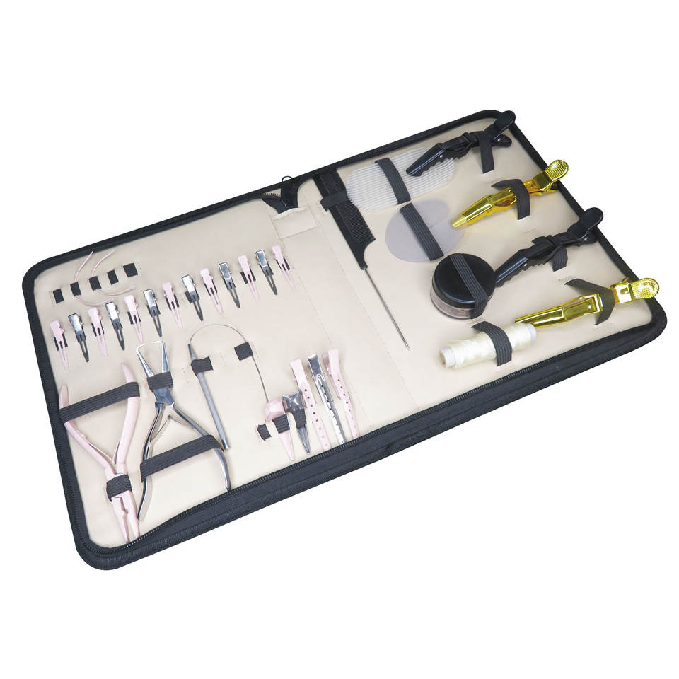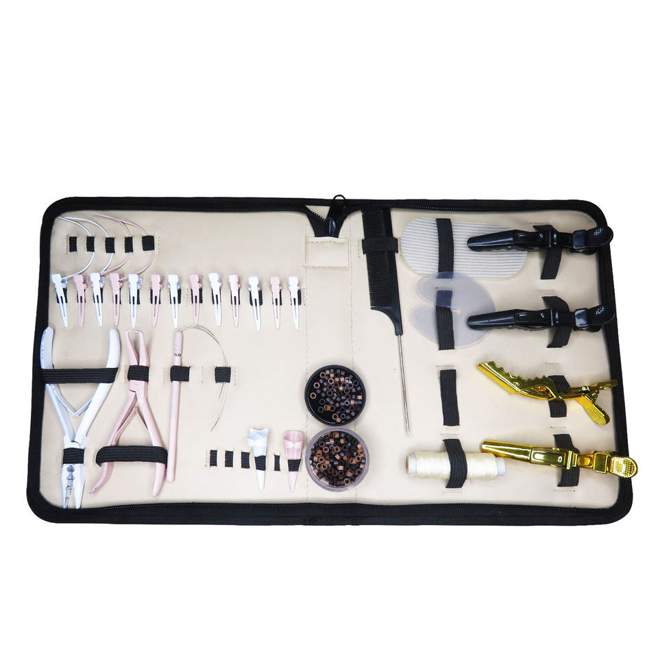 Kit de herramientas profesionales para extensiones de cabello con microanillos, fusión y clips de cocodrilo para uso comercial de calidad profesional.
