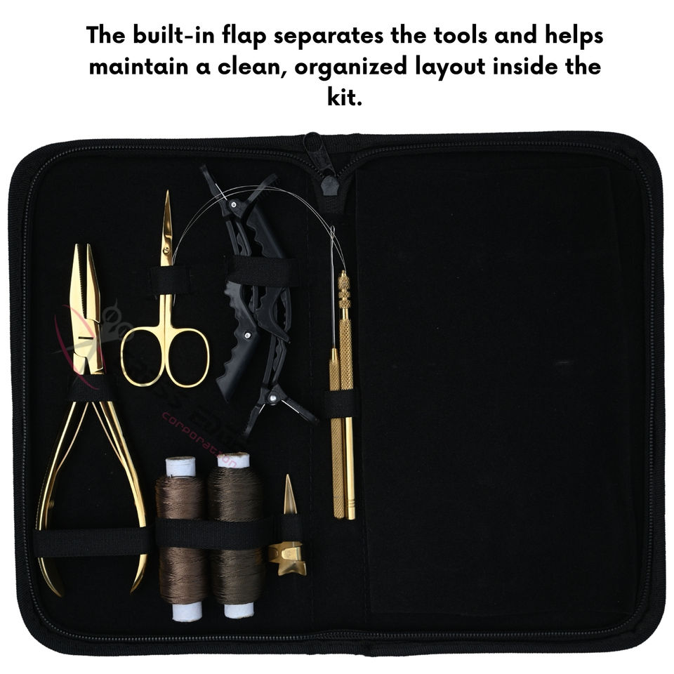 Kit Profesional de Herramientas para Extensiones de Cabello con Pinza para Cuentas Planas de 7 Pulgadas, Gancho para Cabello, Hilos para Pelucas, Mini Tijeras de Precisión