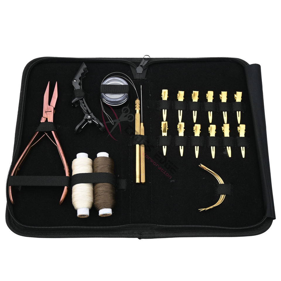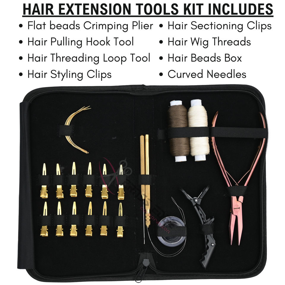 Kit de herramientas profesionales para extensiones de cabello con alicates para abrir y cerrar cuentas, gancho dorado para instalación de extensiones, juego de hilos para coser.