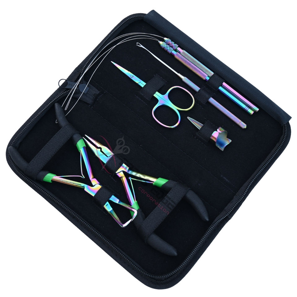 MOQ:1 estuche Kit de herramientas profesionales para extensiones de cabello con alicates para cerrar cuentas