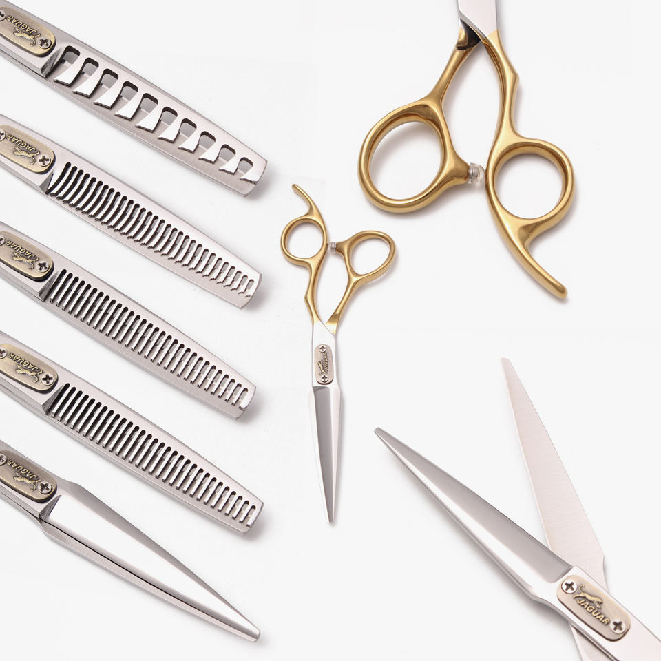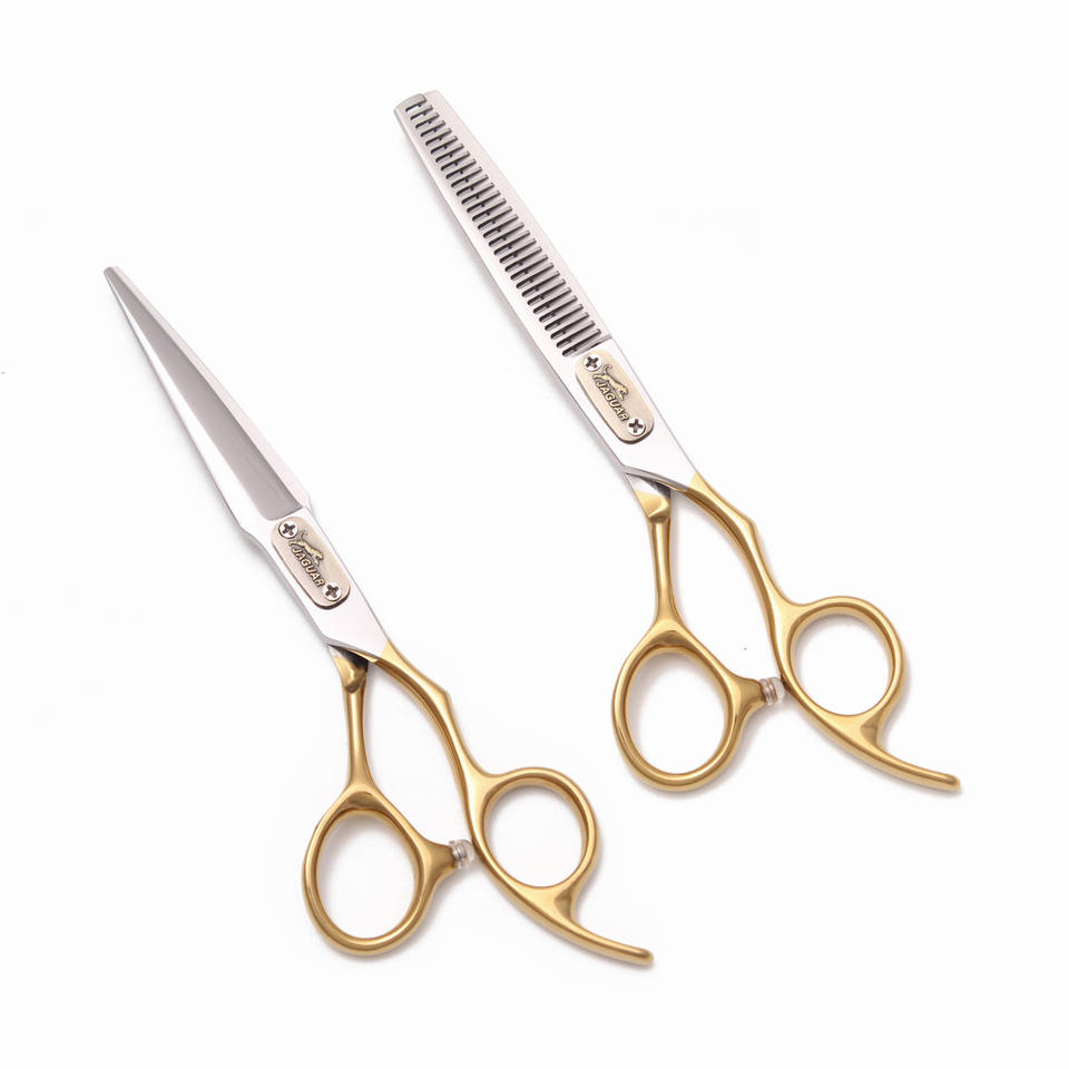 Tijeras Profesionales para Cabello con Mango Dorado, Tijeras de Entresacar y Texturizar con Dientes Diferentes, Acero Japonés 440C, Herramientas de Peluquería