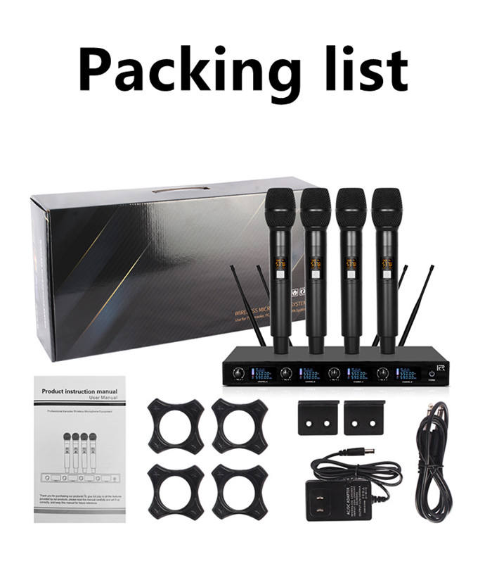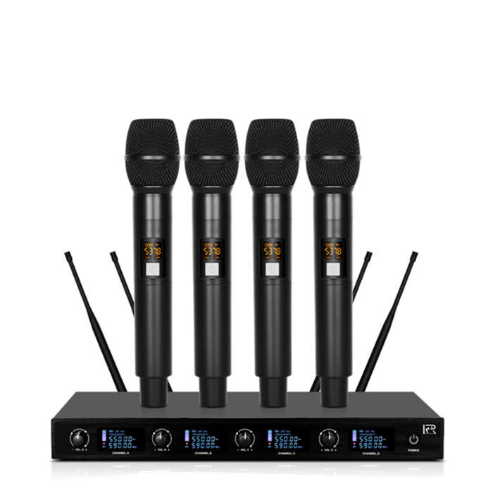 Micrófono Inalámbrico UHF Profesional de Mano de 4 Canales, Micrófono Dinámico para Actuaciones en Escenarios de Iglesias, Micrófonos, Micrófono