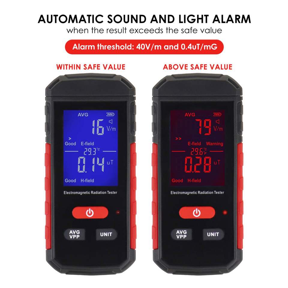 1~1999V/m (EF) / 0.01~99.99uT/ 0.1~999.9mG (MF)
