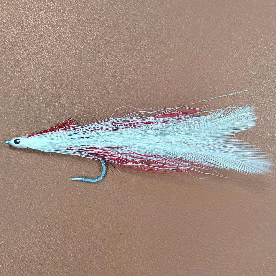 Profesional hecho a mano pesca con mosca moscas húmedas rojo blanco engañador #08 gancho nivel comercial para Río agua salada peces materiales