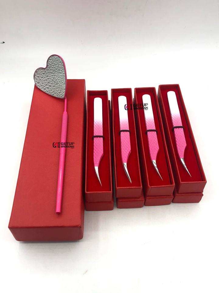 Pinzas Profesionales de Acero Inoxidable para Extensión de Pestañas, Estilo Delfín, con Recubrimiento de Polvo de Doble Color y Espejo en Forma de Corazón