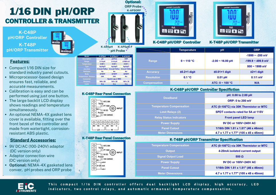 Basic Accuracy: Temperature, pH, ORP:±0.2+1 digit(Temperature), ±0.01+1 digit(pH), ±2+1 digit(ORP)