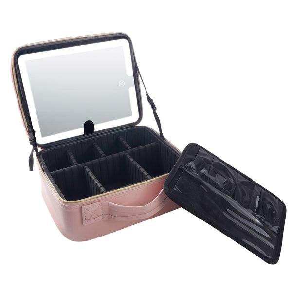 Bolsa de Maquillaje Portátil Profesional de Alta Capacidad, Multicapa, con Correa, para Cosméticos, Color Rosa