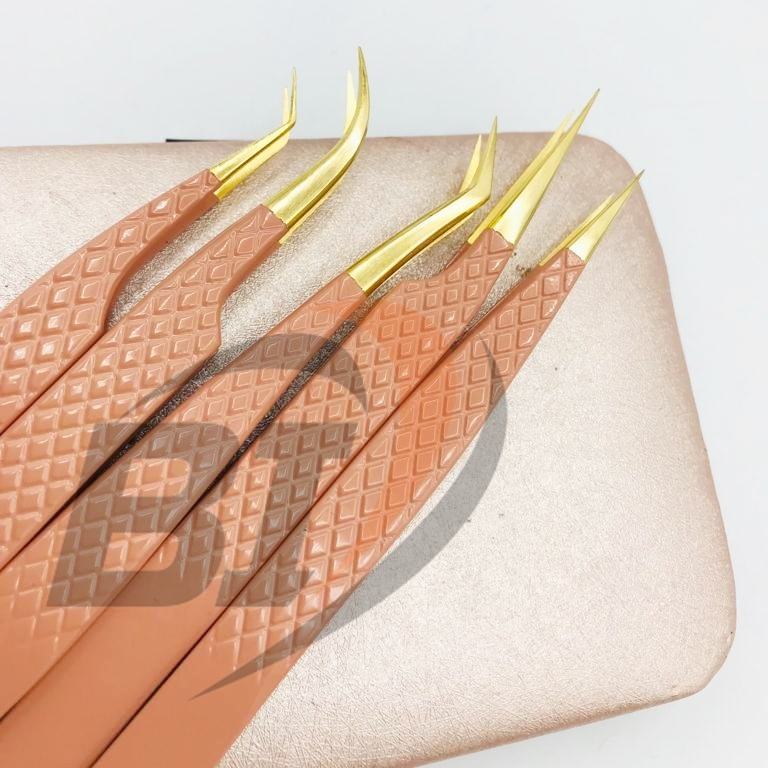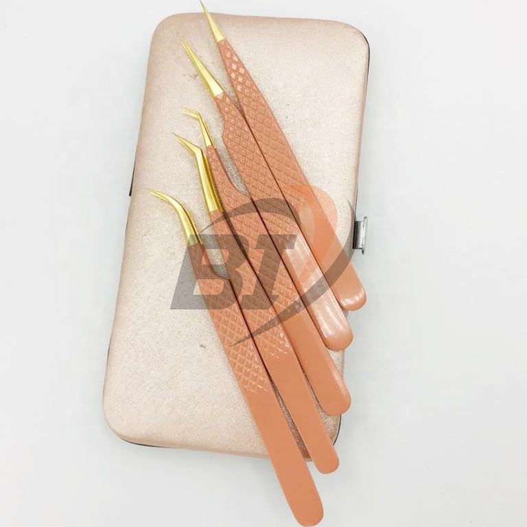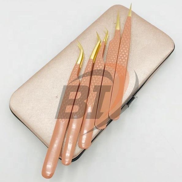 Pinzas para extensiones de pestañas de acero inoxidable con revestimiento de Color personalizado de alta calidad profesional, herramienta de belleza sostenible, acero fino
