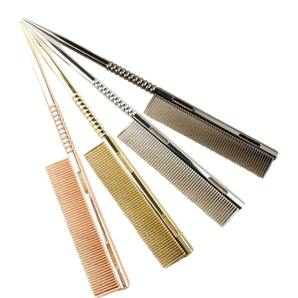 Peine Profesional de Alta Calidad con Punta Dorada de Metal, Acero Inoxidable Iónico, para Cortar el Cabello, con Logotipo Personalizado, Resistente al Calor, para Barbería