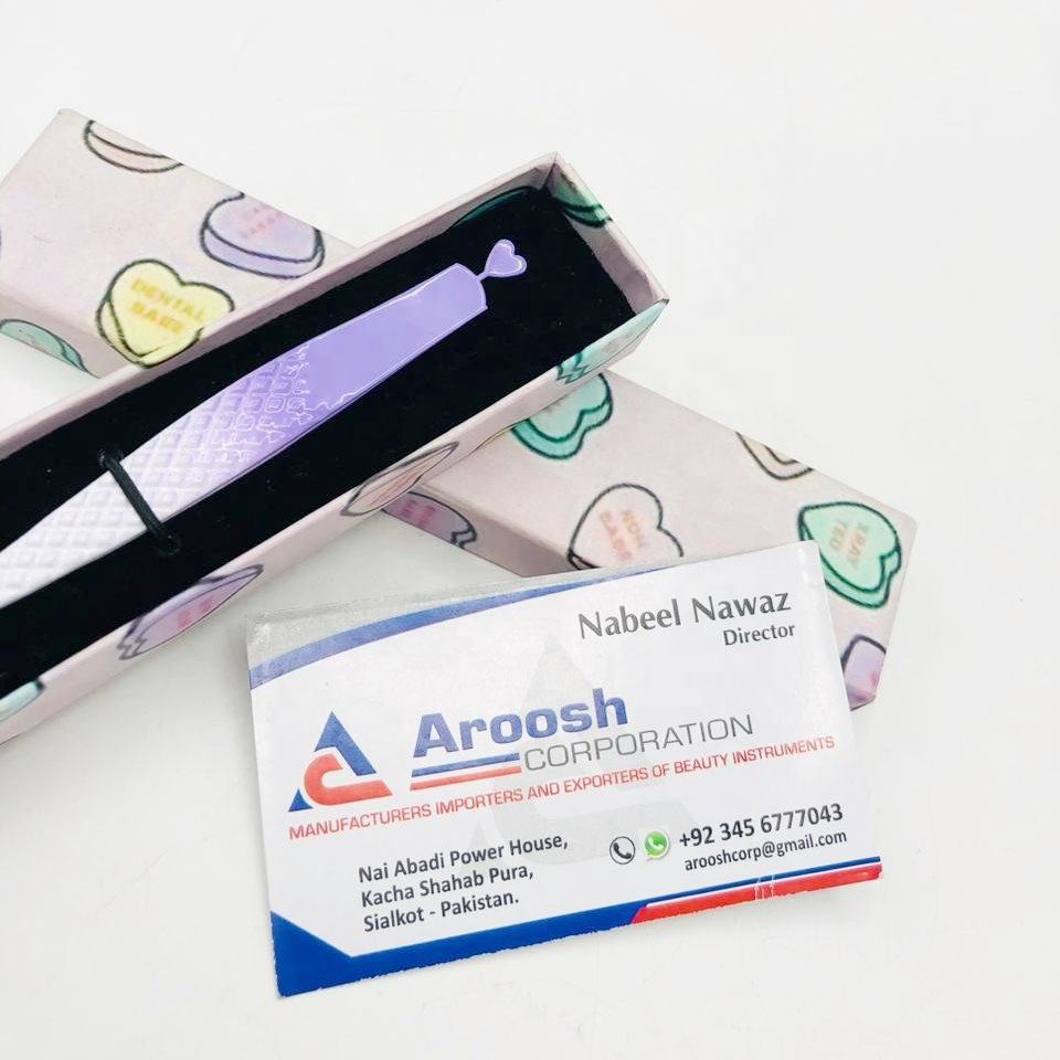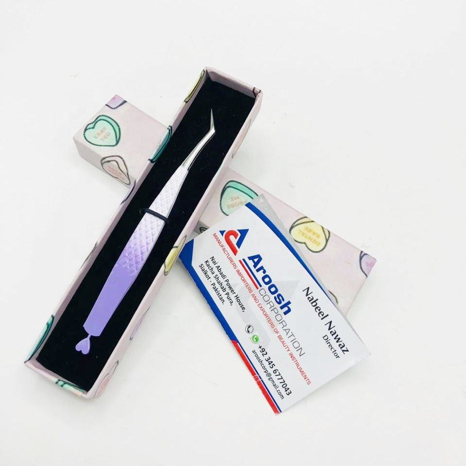 Pinzas profesionales de corazón con agarre de diamante de acero inoxidable de alta calidad, Punta puntiaguda para extensión de pestañas, Color blanco y morado