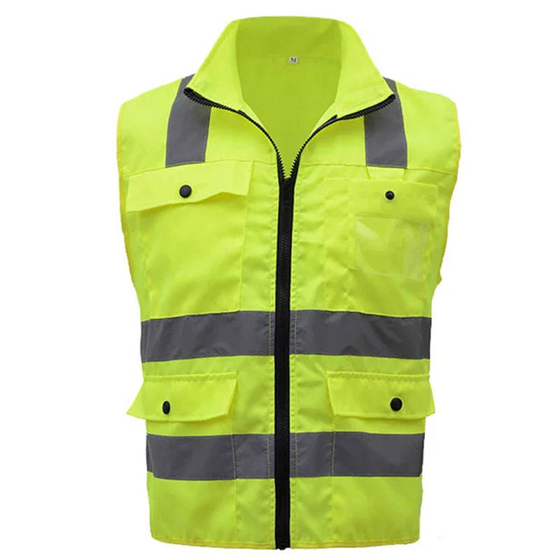 Chaleco de Seguridad Profesional de Alta Visibilidad ANSI Clase 1 con Bolsillos, Cierre, Reflectante, Impermeable, LED Intermitente y Logotipo Personalizado para Hombre