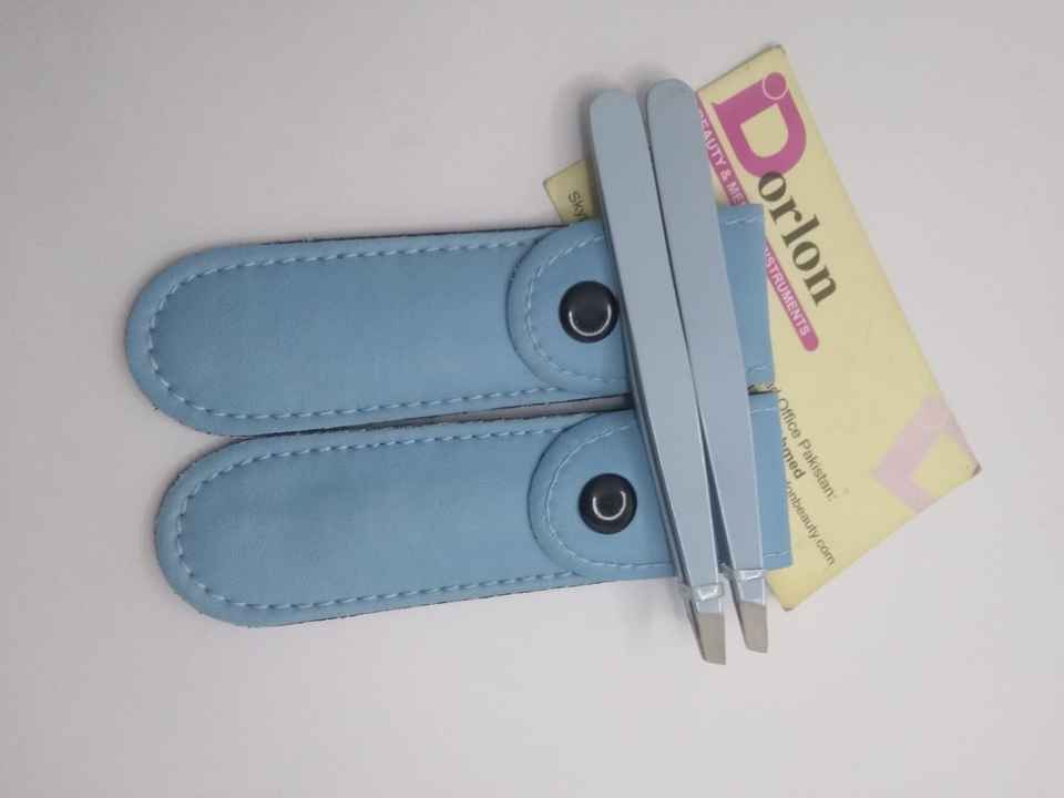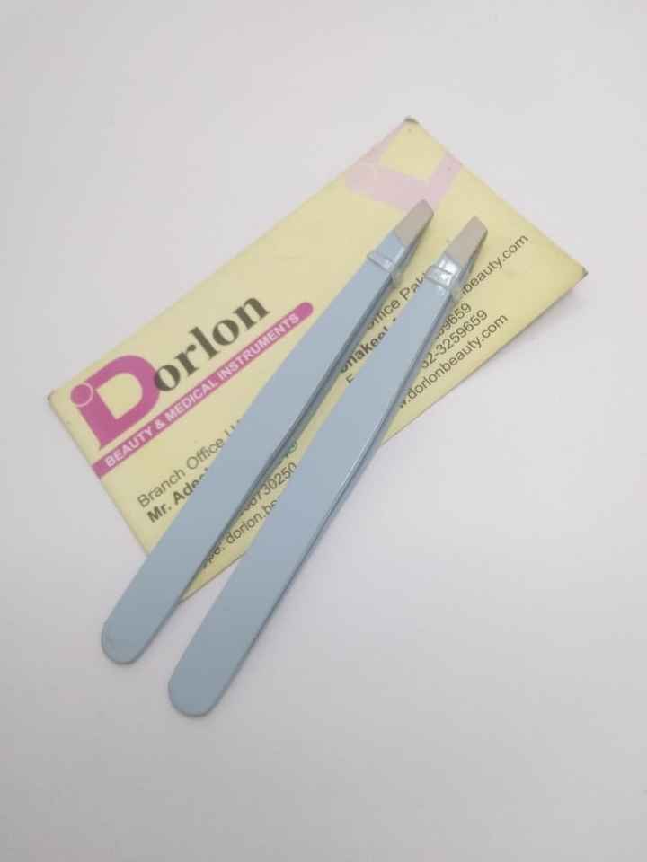 Pinzas profesionales para cejas de acero inoxidable Dorlon, certificado CE ISO, respetuoso con el medio ambiente, alta calidad, azul hielo, recubierto de Color inclinado