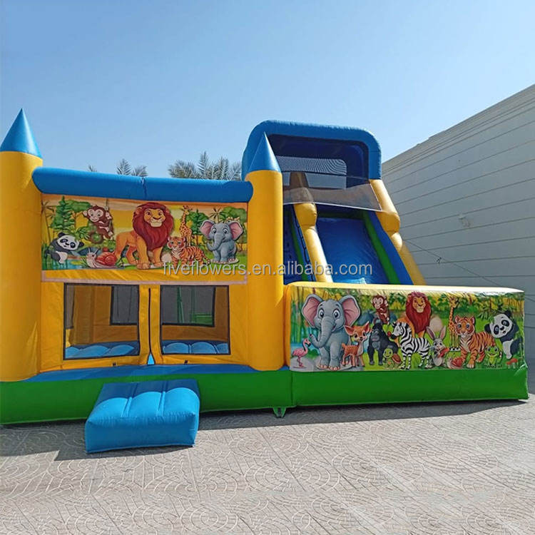 Inflable Profesional Azul y Amarillo para Niños, Compre un Castillo Inflable con Tobogán, Equipo de Juegos para Exteriores