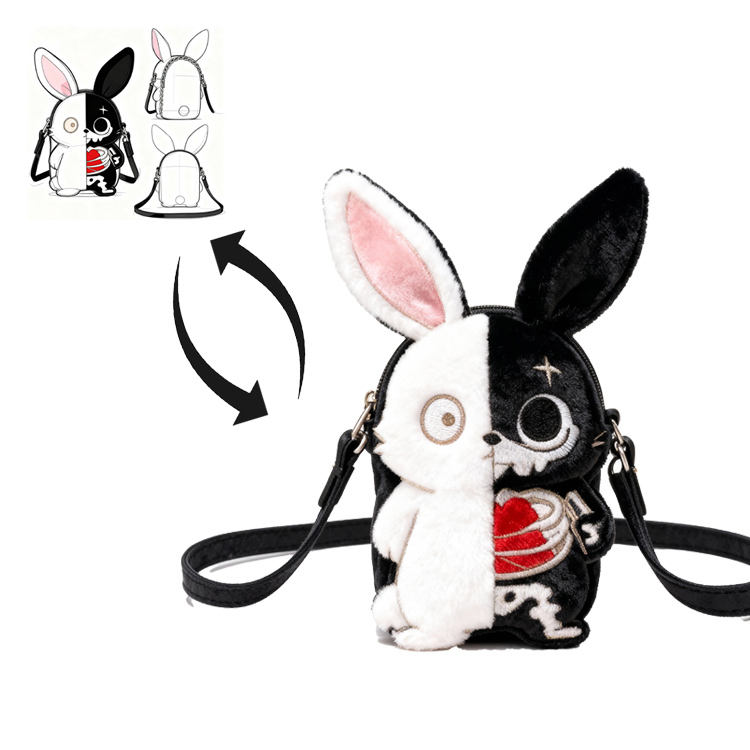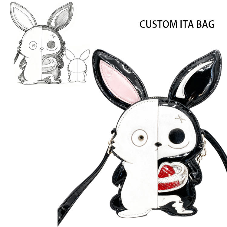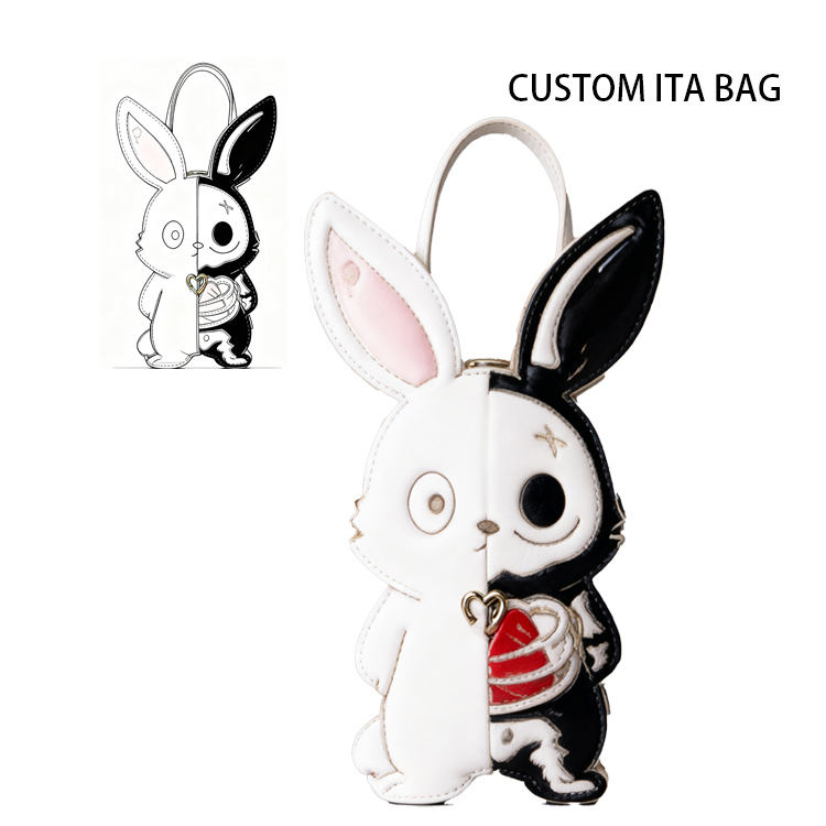 Fabricante profesional de bolsas Ita, bolsa Ita de conejo blanco negro gótico personalizada con MOQ bajo