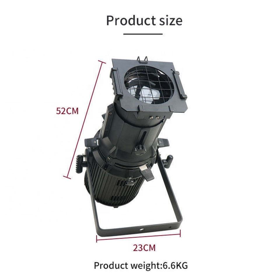 Proyector LED Profesional para Escenario, RGBW DMX, 200W, Luz Elipsoidal LED con Zoom