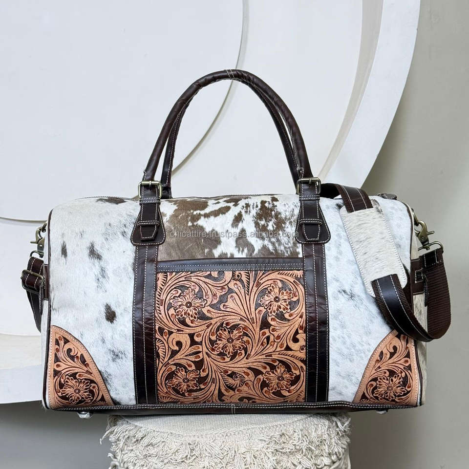 Bolsos de viaje de cuero de vaca trabajados a mano