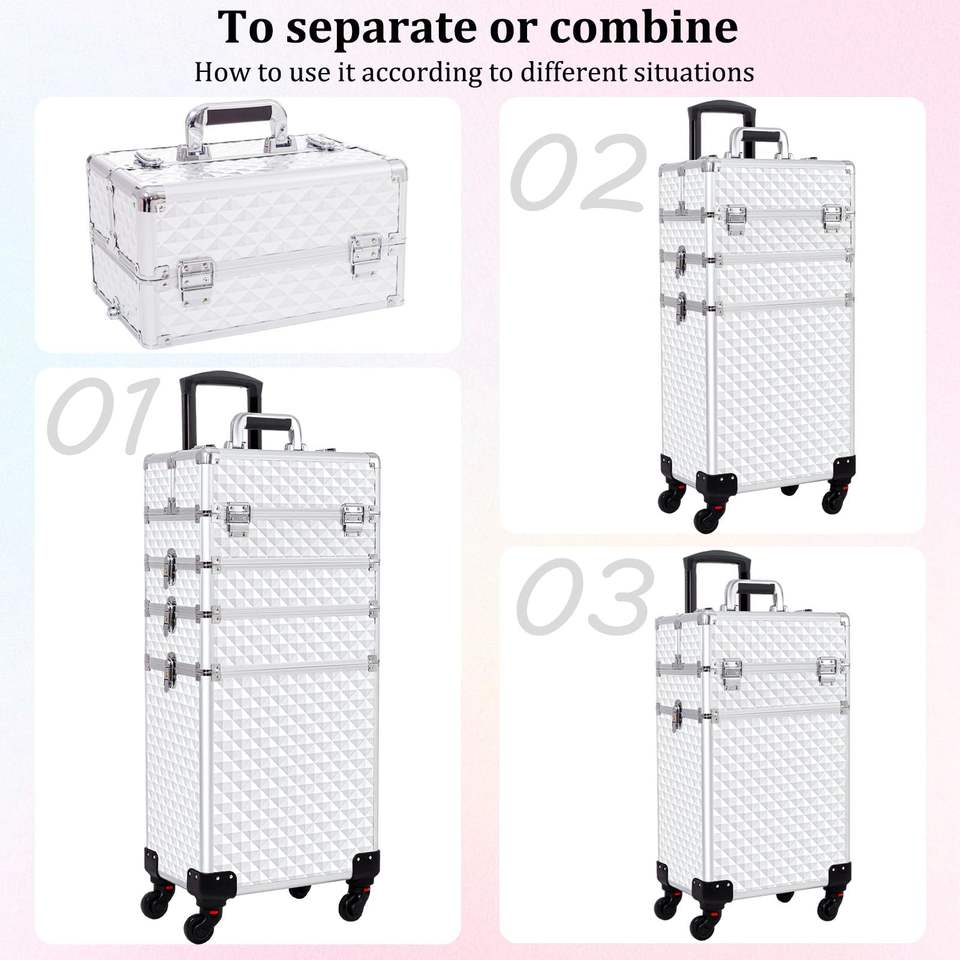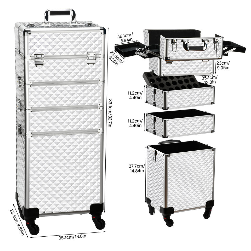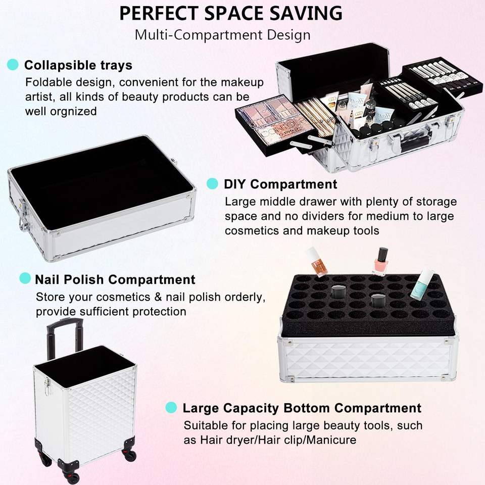 Maleta de Maquillaje Profesional con Ruedas de Gran Capacidad, Carro de Peluquería, Maleta de Almacenamiento, Maleta de Viaje