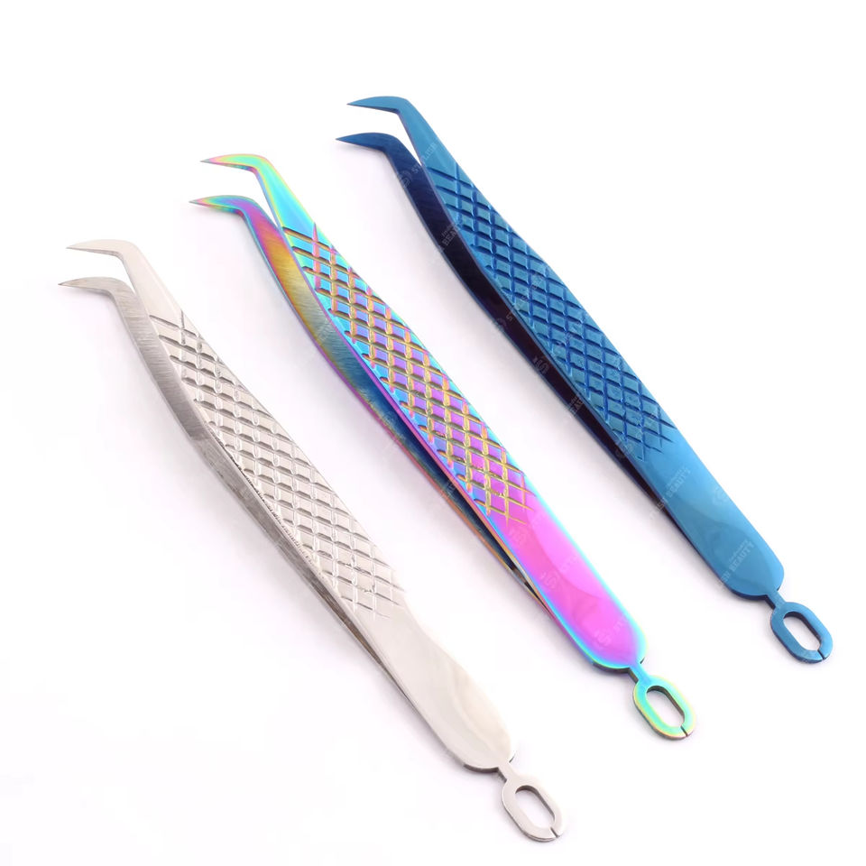Juego de Pinzas Profesionales para Extensión de Pestañas, Agarre Perfecto, Antideslizantes y Probadas a Mano para Uso en Salón y Belleza