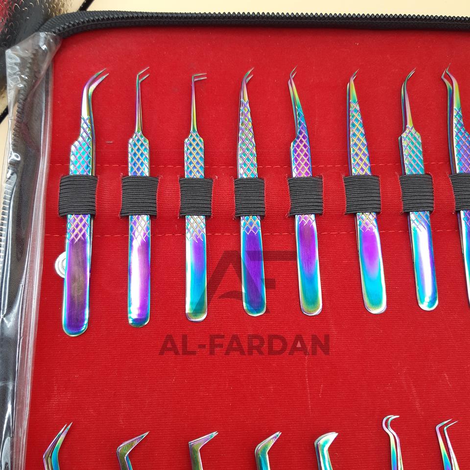 Pinzas profesionales para pestañas, juego completo de arcoíris multicolor, Kits personalizados, pinzas para extensión de pestañas con agarre de diamante, acero inoxidable sólido