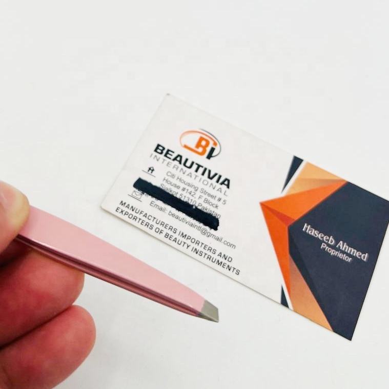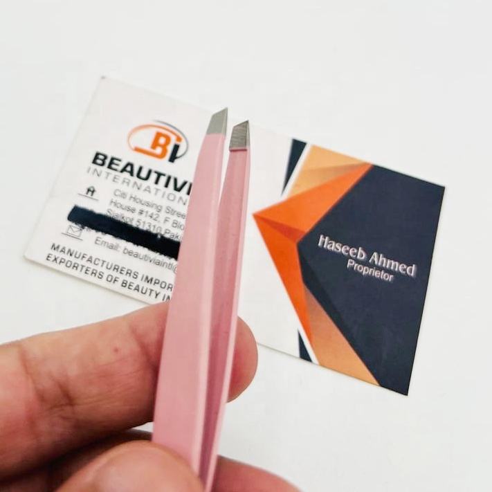 Pinzas Profesionales para Cejas de Acero Inoxidable Rosa Claro con Punta Inclinada, Logotipo Personalizado, Herramienta para Depilar y Eliminar el Vello