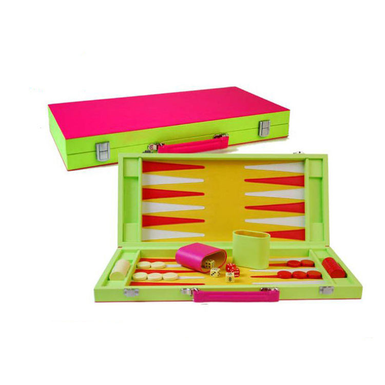 Juego de backgammon de cuero hecho a mano de lujo profesional, diseño colorido para exteriores y viajes para niños