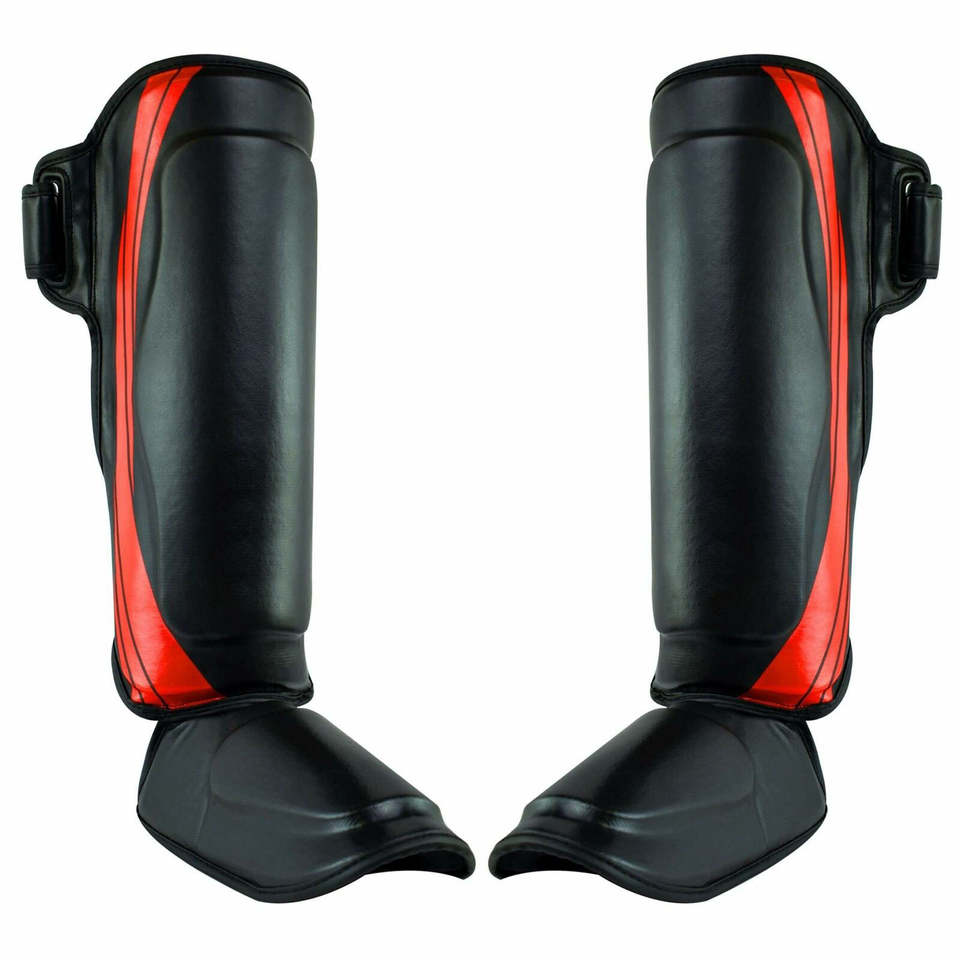 Espinillera profesional hecha con logotipo personalizado estampado de cuero MMA Karate Shin Guard al por mayor de la mejor calidad espinilleras Kickboxing