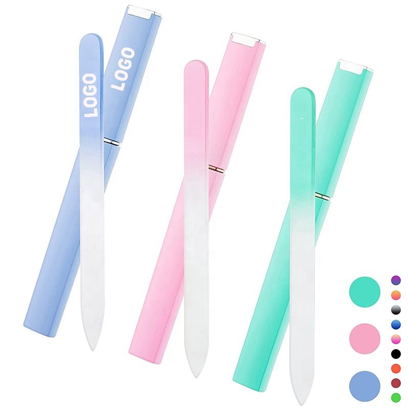 Herramienta profesional para el cuidado de las uñas, lima de uñas portátil de cristal Natural con funda