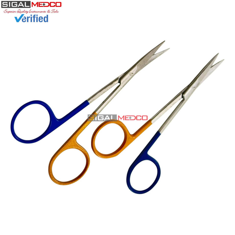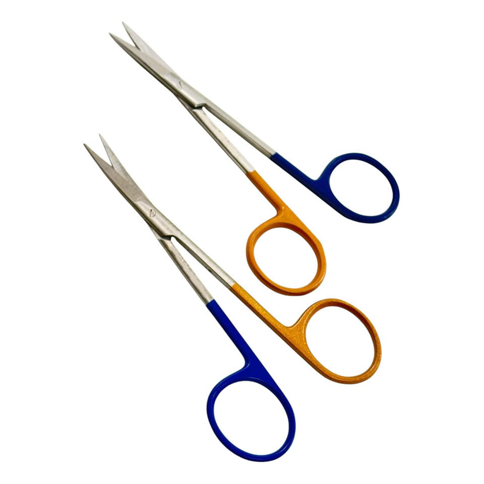 Tijeras de Disección Manuales Profesionales, Curvas y Rectas, Hojas de Acero Inoxidable, Puntas Afiladas de Precisión, Mango de Color Dorado y Azul