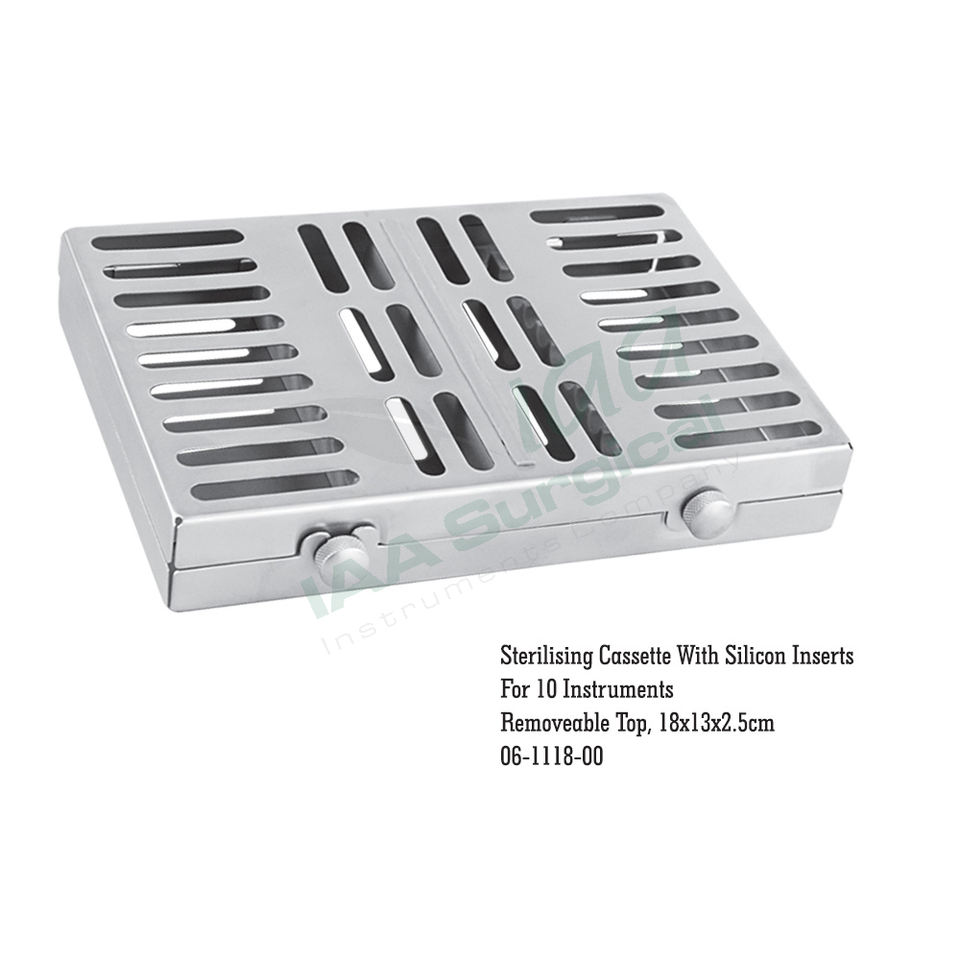Cassette Profesional para Instrumentos Manuales con Inserciones de Silicona de Colores, Autoclavable, Diseño Perforado, Fácil Limpieza, Certificado CE