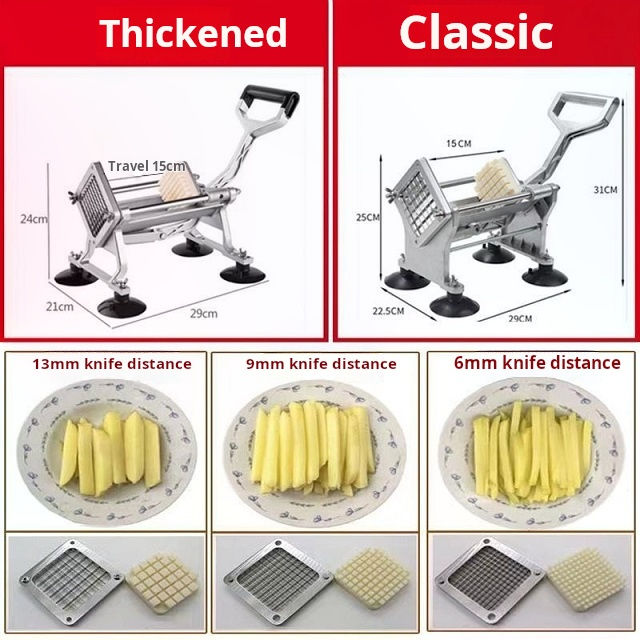 Cortador de patatas manual profesional con cuchillas de acero inoxidable y ventosas para zanahoria, cebolla, picadora de verduras plateadas