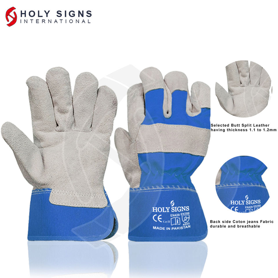 Guantes de trabajo de Palma de cuero dividido de grado A de fabricación profesional para una mayor seguridad en la construcción y los sitios para trabajos
