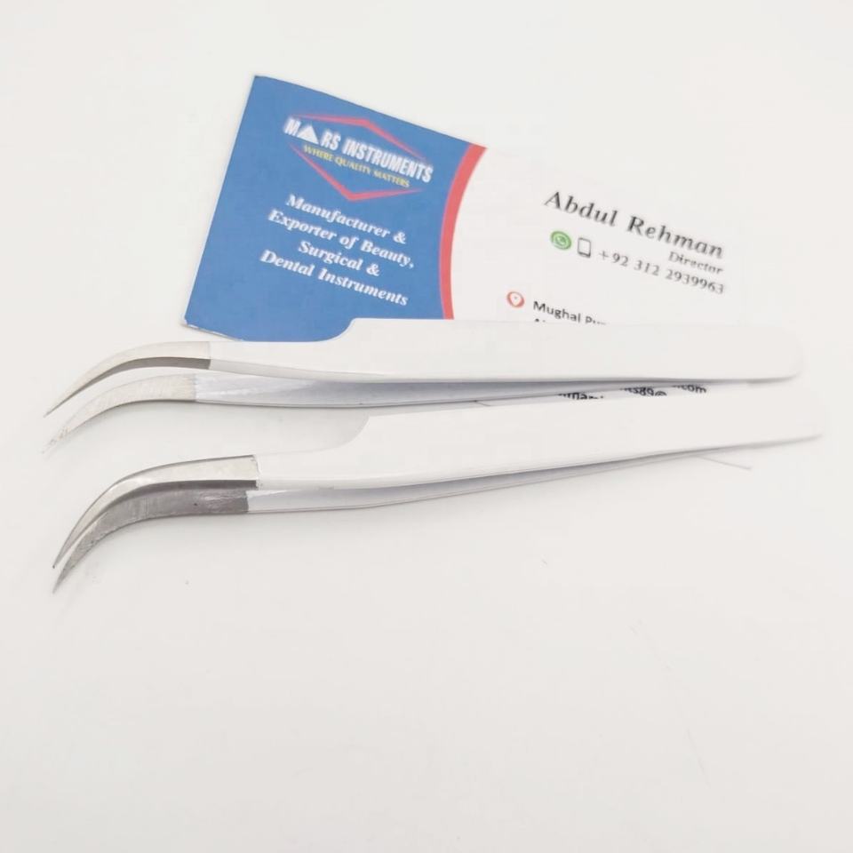 Puntas de fibra blanca Pinzas para pestañas Etiqueta privada Empuñaduras de diamante personalizadas Pinzas para pestañas con punta de fibra de volumen recto