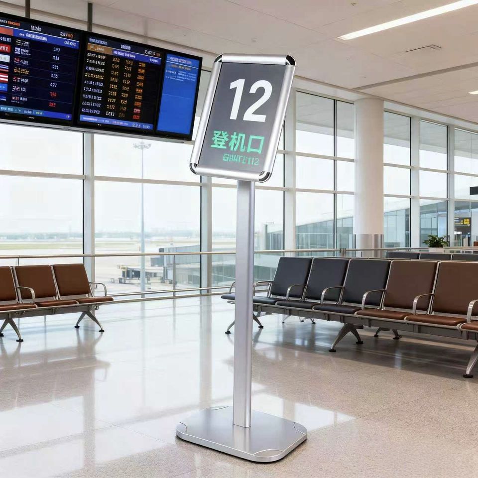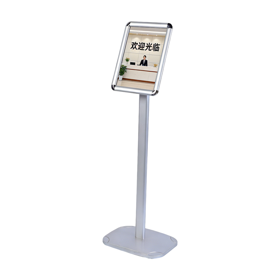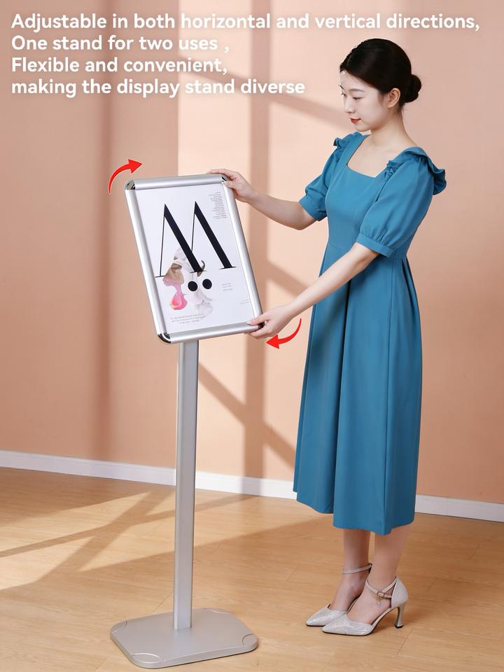 Expositor de Menús Profesional Fijo de 103 cm de Altura con Marco de Aluminio y Base de Acero, Orientación Horizontal y Vertical