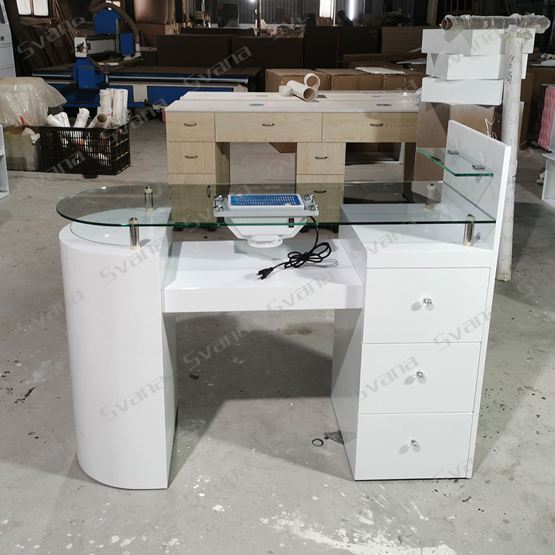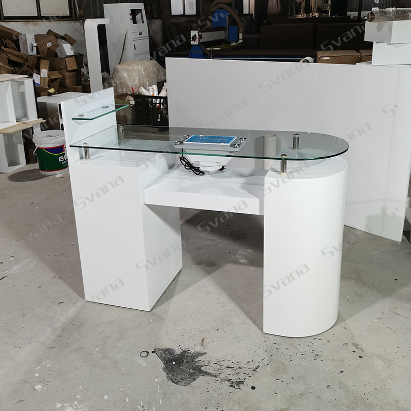Muebles de salón modernos profesionales Mesa de manicura de lujo Mesa de técnico de uñas superior de vidrio