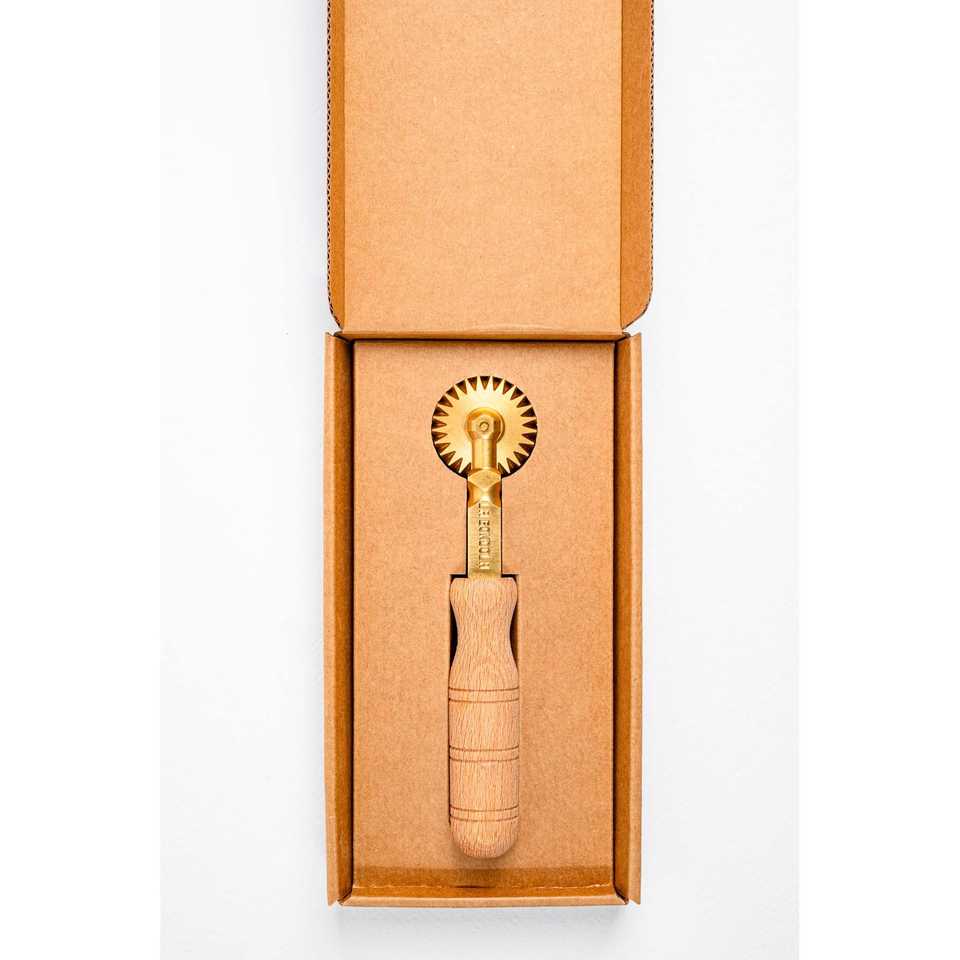 Rueda cortadora de pasta profesional adornada, en latón duradero y madera natural-TONY