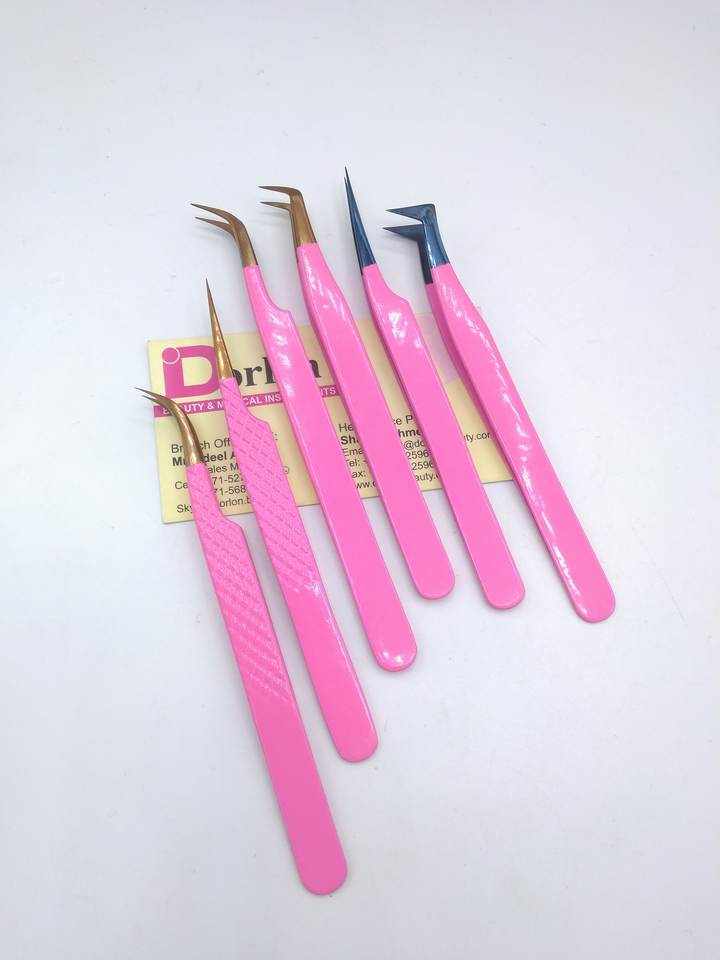 Pinzas de pestañas rosas Pinzas de extensión de pestañas de punta de plasma azul de oro rosa personalizadas Pinzas de aislamiento y volumen ruso 90