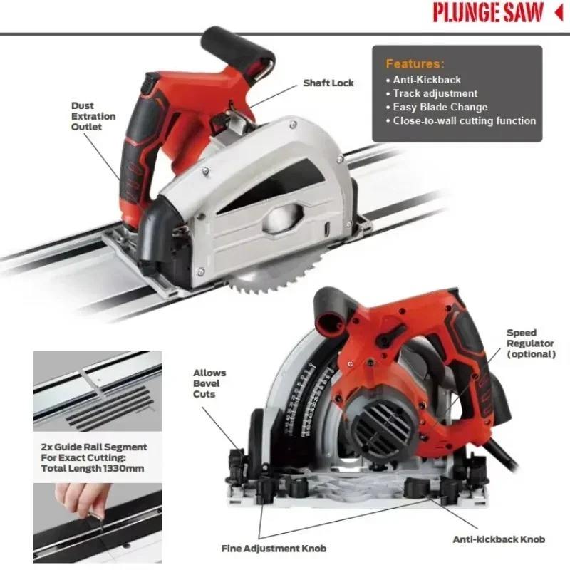 Sierra Circular Profesional con Sistema de Riel Guía y Función de Seguridad Antirretorno para Cortes Precisos en Madera y Trabajos de Carpintería