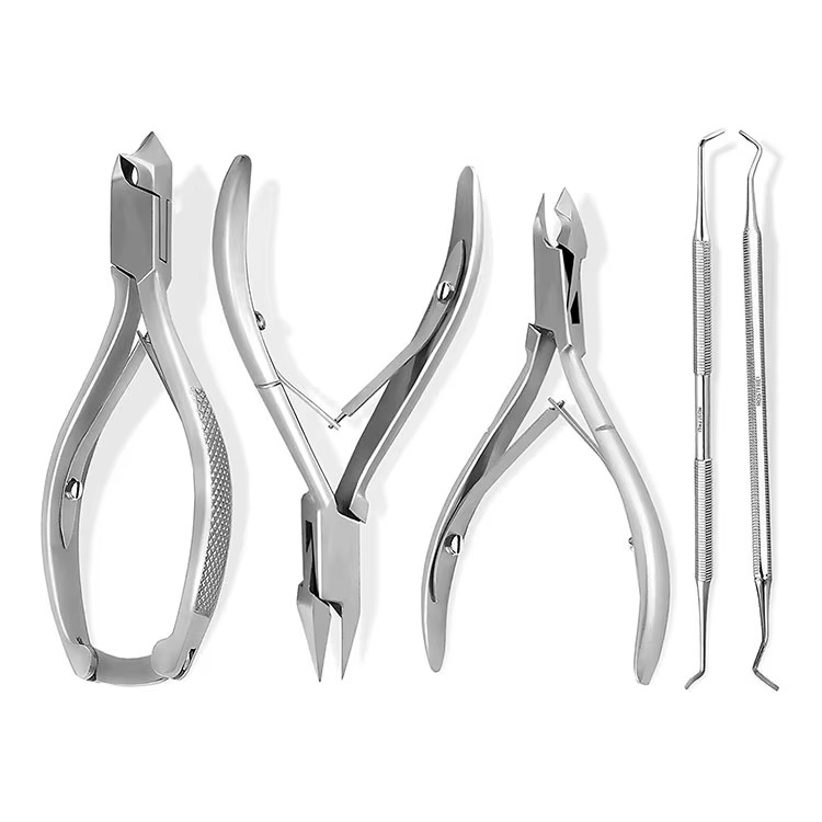Juego de Instrumentos Profesionales de Podología para Cutículas y Uñas, Cortaúñas de Hoja Plana, Manual, con Acabado Espejo, Recubrimiento de Plasma en Polvo, Metal 1