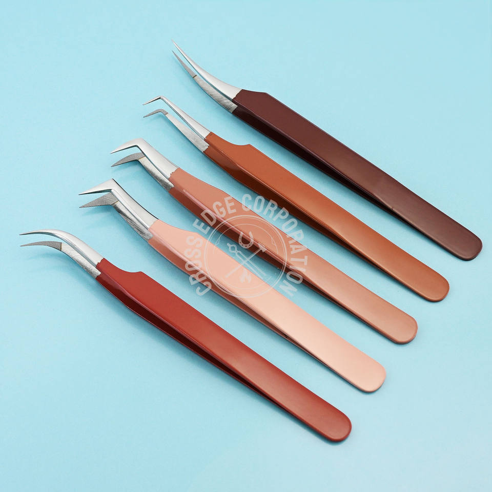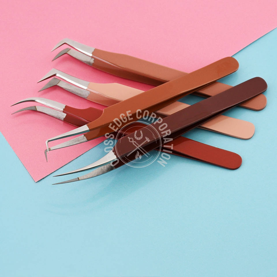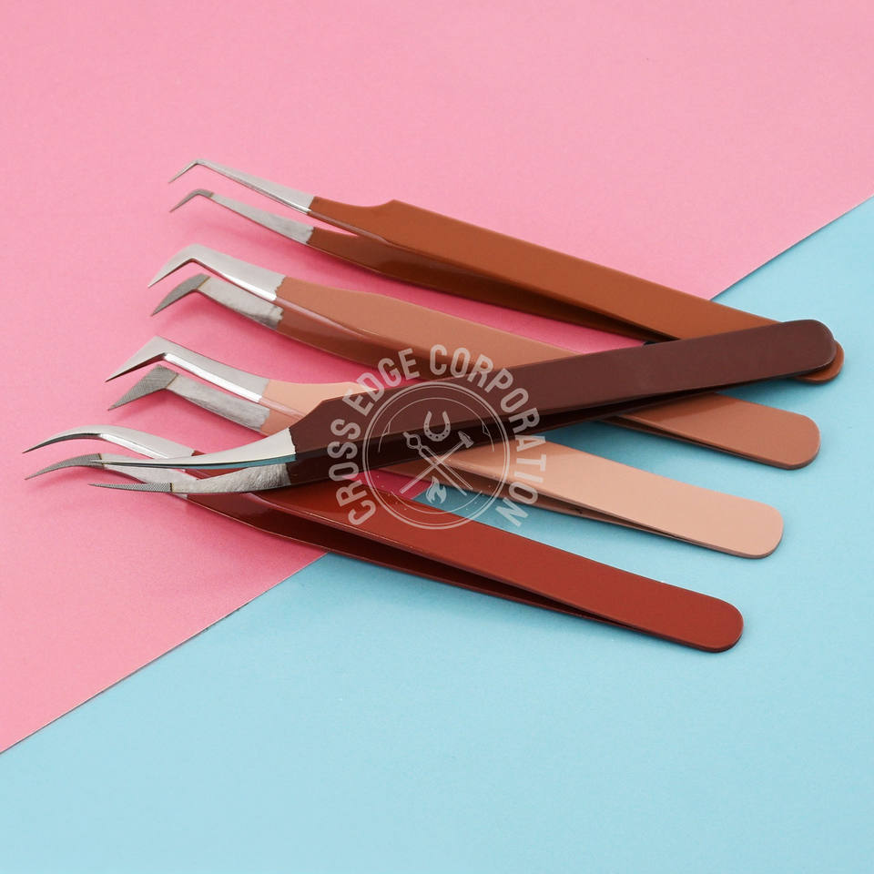 Pinzas Profesionales de Punta Fina 90 para Volumen de Pestañas, Color Nude
