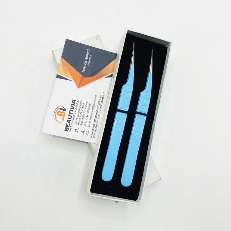 Pinzas profesionales para extensión de pestañas con punta puntiaguda, logotipo personalizado y estampado de corazón, herramienta de belleza de acero sostenible, Material inoxidable