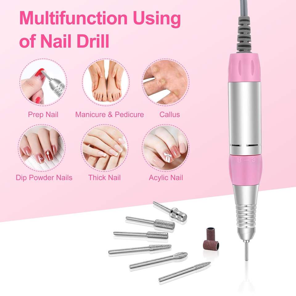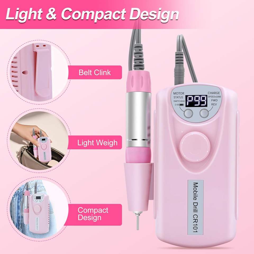 Pulidora de Uñas Portátil Recargable de 35000 RPM, Velocidad Profesional para Manicura con Bandas de Lijado, Juego de Brocas y Accesorios