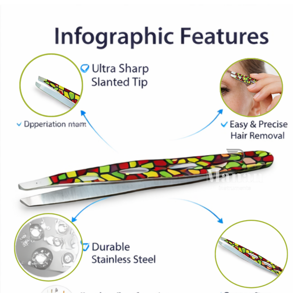 Pinzas de Cejas Profesionales de Acero Inoxidable con Diseño Colorido de Primera Calidad, Punta Inclinada, Herramienta de Belleza para Depilación de Precisión