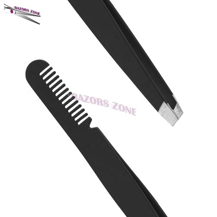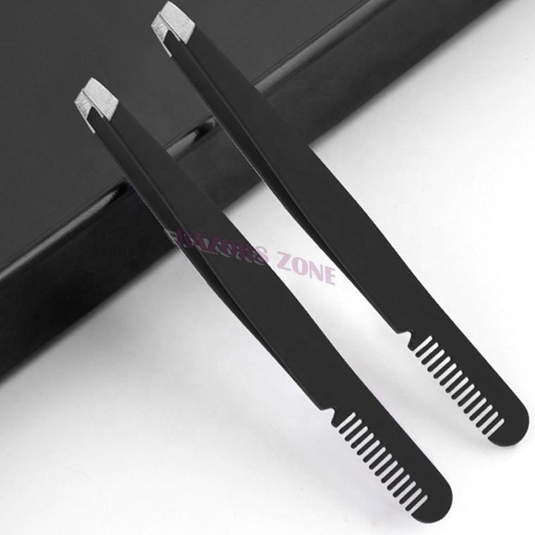 Peine de Punta inclinada profesional de acero inoxidable Premium, pinzas para cejas, herramienta de belleza personalizada para depilación de alta calidad