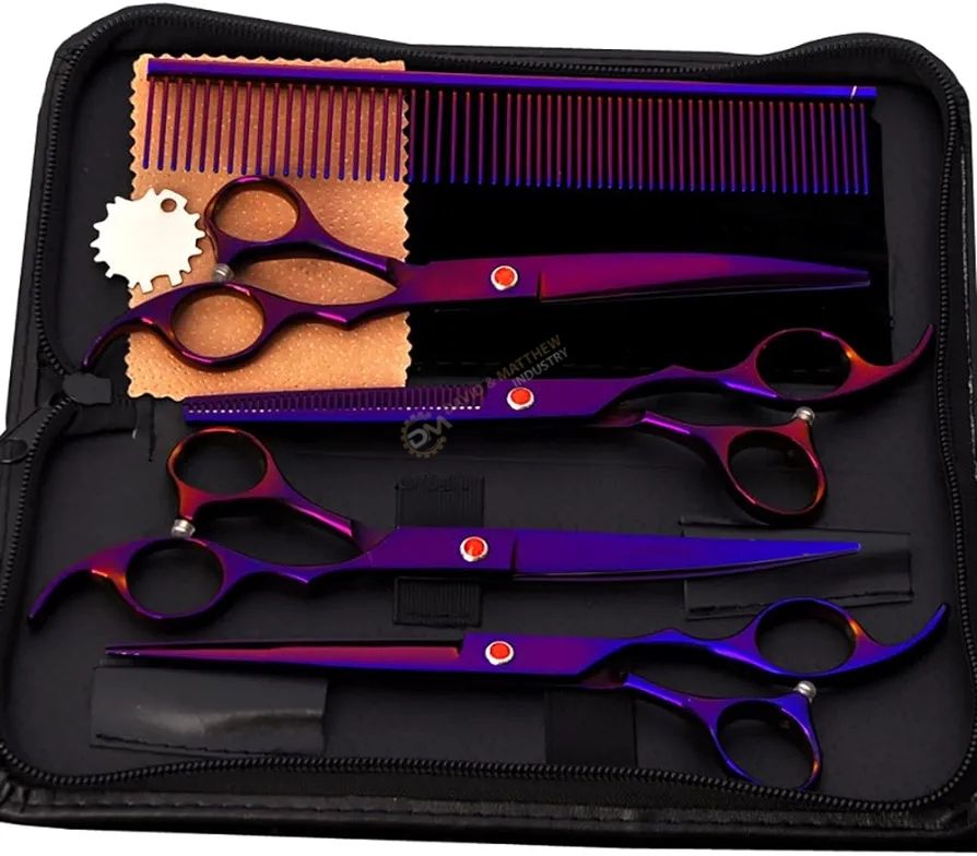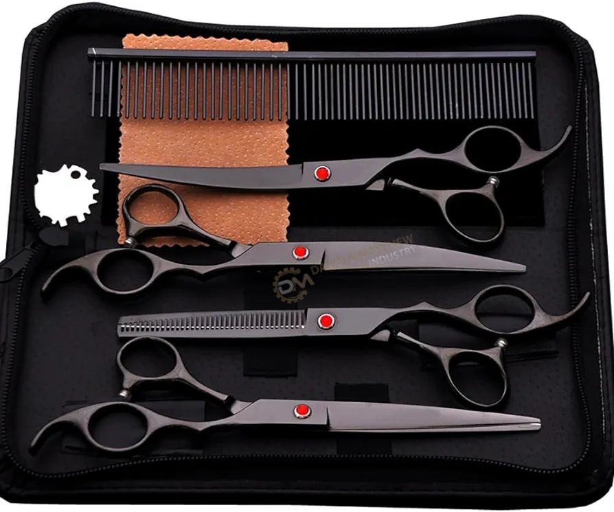 Kit de tijeras para el cuidado de mascotas de calidad profesional, acero inoxidable, corte suave de alta calidad, adelgazamiento recto, cuidado curvo para perros
