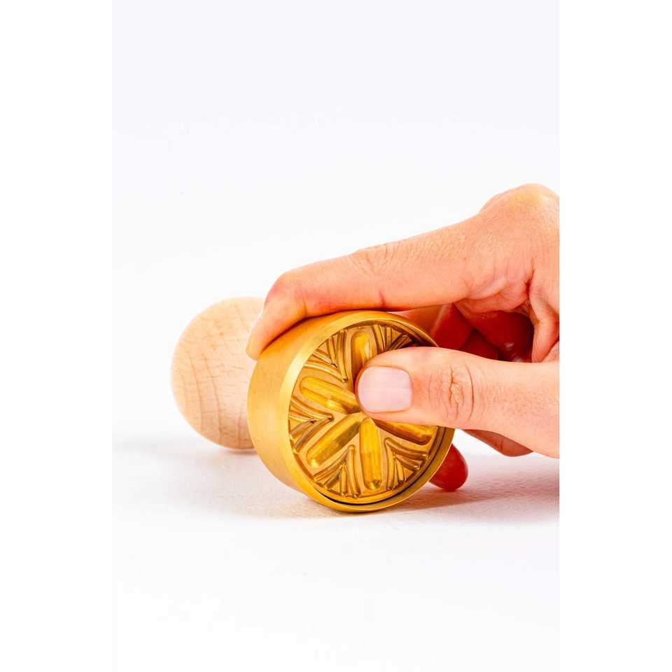 Sello Profesional Ravioli y Pasta (Corzetti) REDONDO en Latón y Madera Natural-RITA