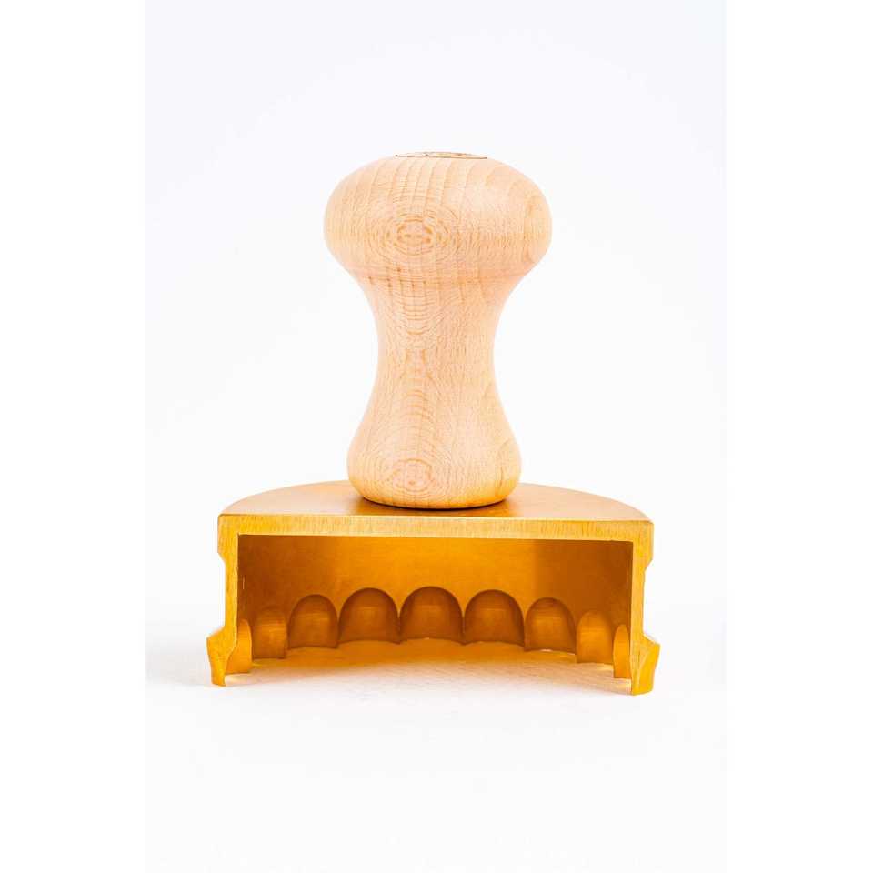 Sello Profesional Ravioli y Pasta MEZZALUNA en Latón y Madera Natural-SARA