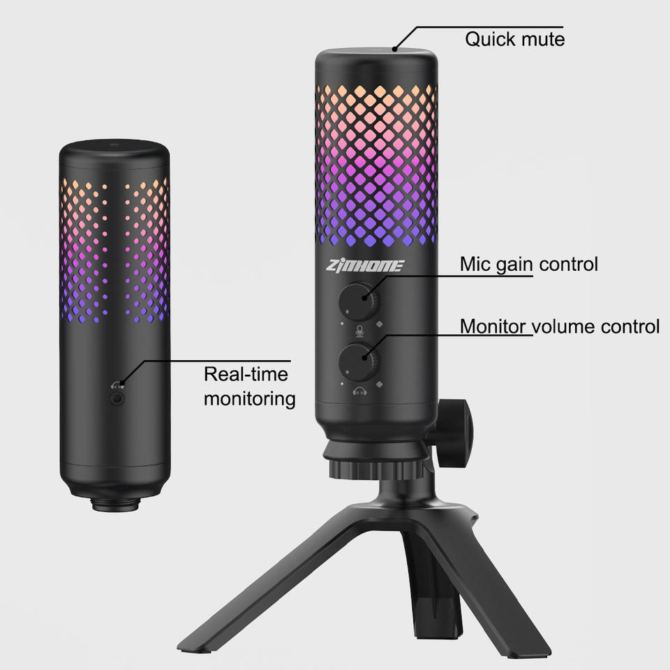 Micrófono de condensador, Cancelación de ruido, Con luces LED, Micrófono USB