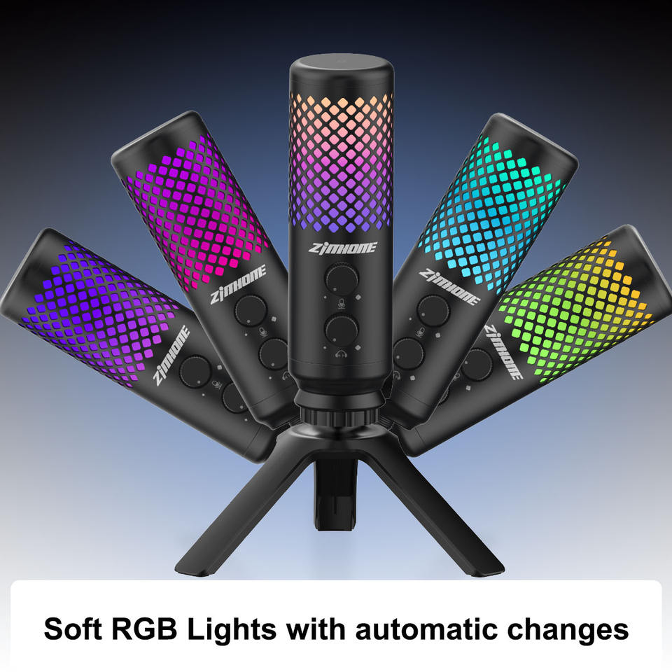 Micrófono condensador de grabación profesional RGB para videojuegos, para Youtube, Tiktok, Twitch, transmisión en vivo
