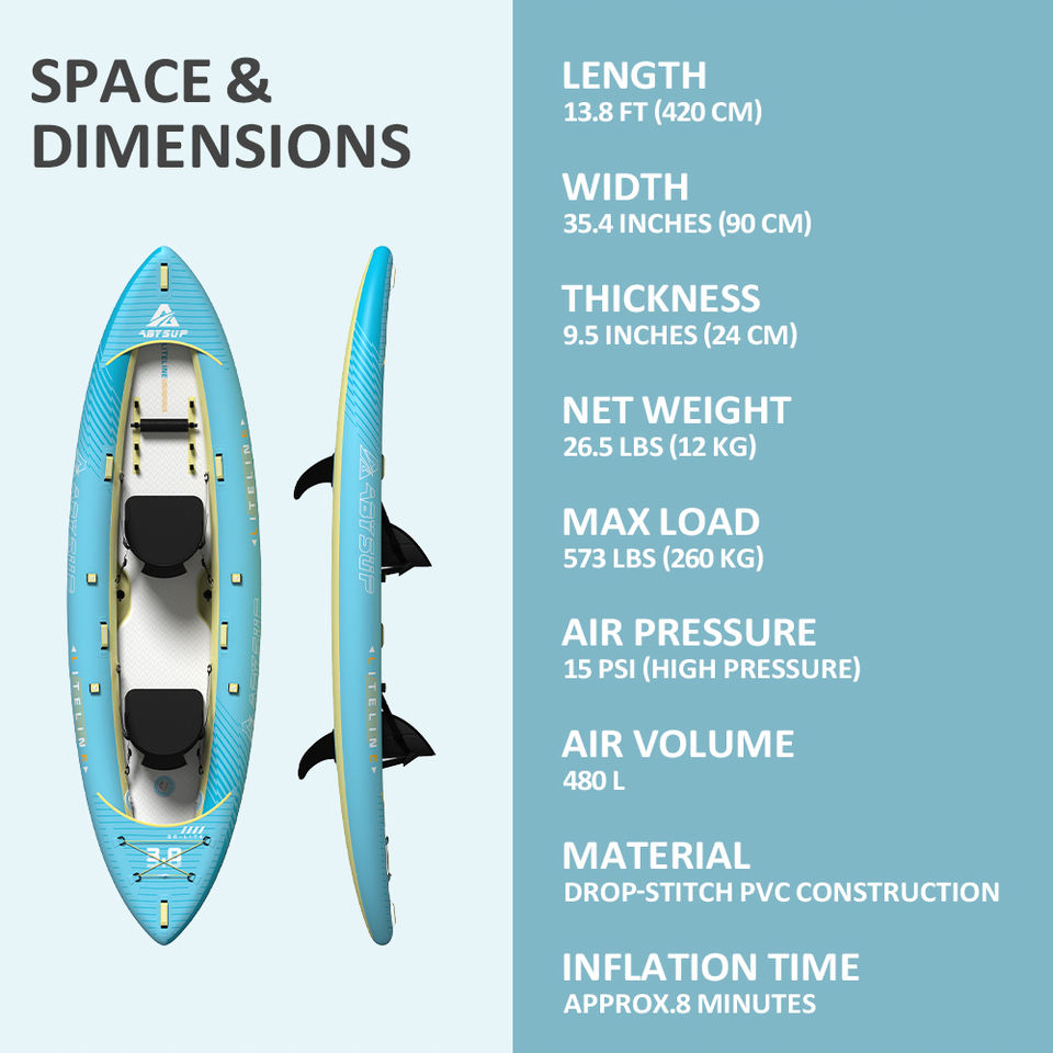 Kayak Inflable Profesional con Piso Rígido de Tecnología Drop Stitch, Canoa Estable para Turismo con Aletas Extraíbles y Reposapiés